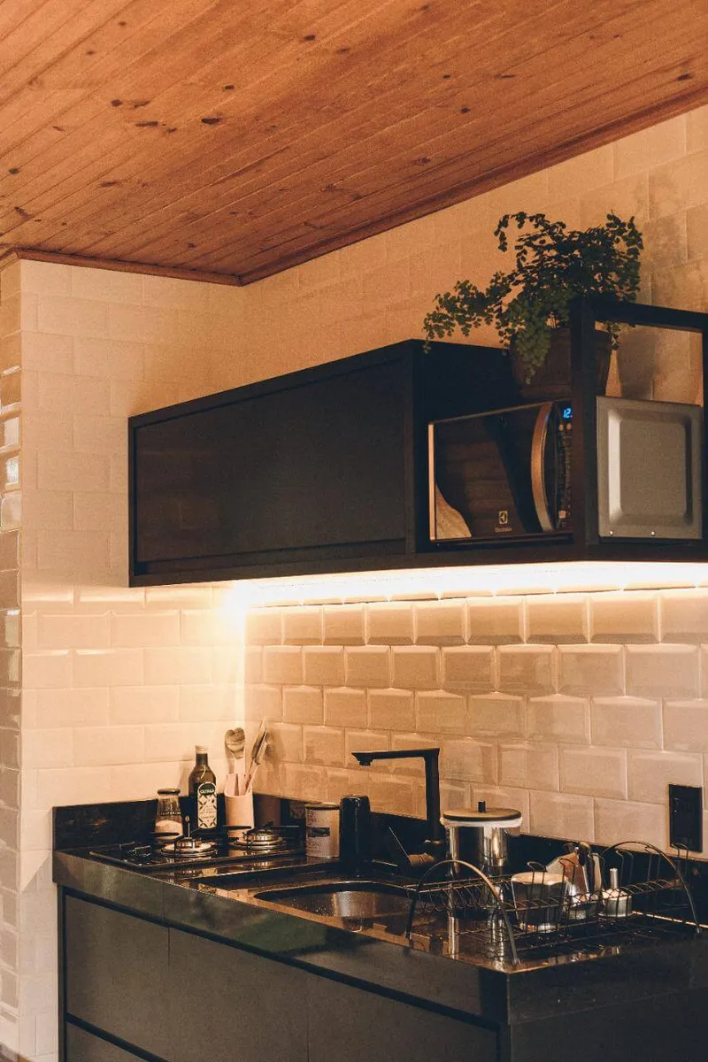 Além disso, mesmo que tenha sido desenvolvida inicialmente para abrigar um casal, a cabana pode acomodar até quatro pessoas. Isso porque, durante o seu desenvolvimento, foi colocado um sofá-cama no espaço. Totalmente instagramável, a hospedagem conta com uma cozinha equipada para os hóspedes que desejam aproveitar o interior do ambiente.