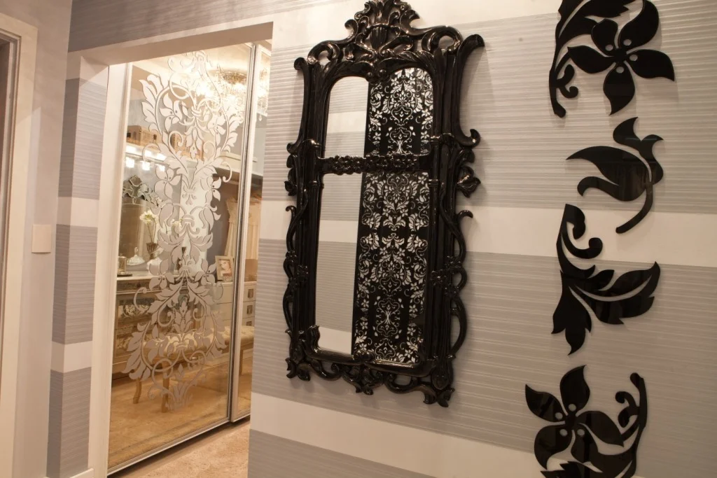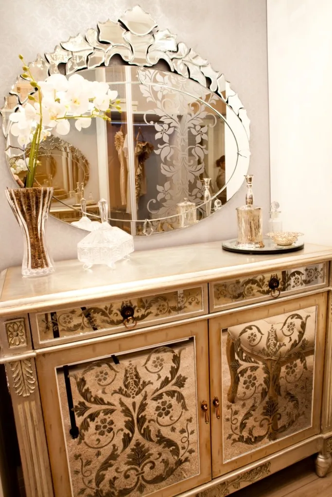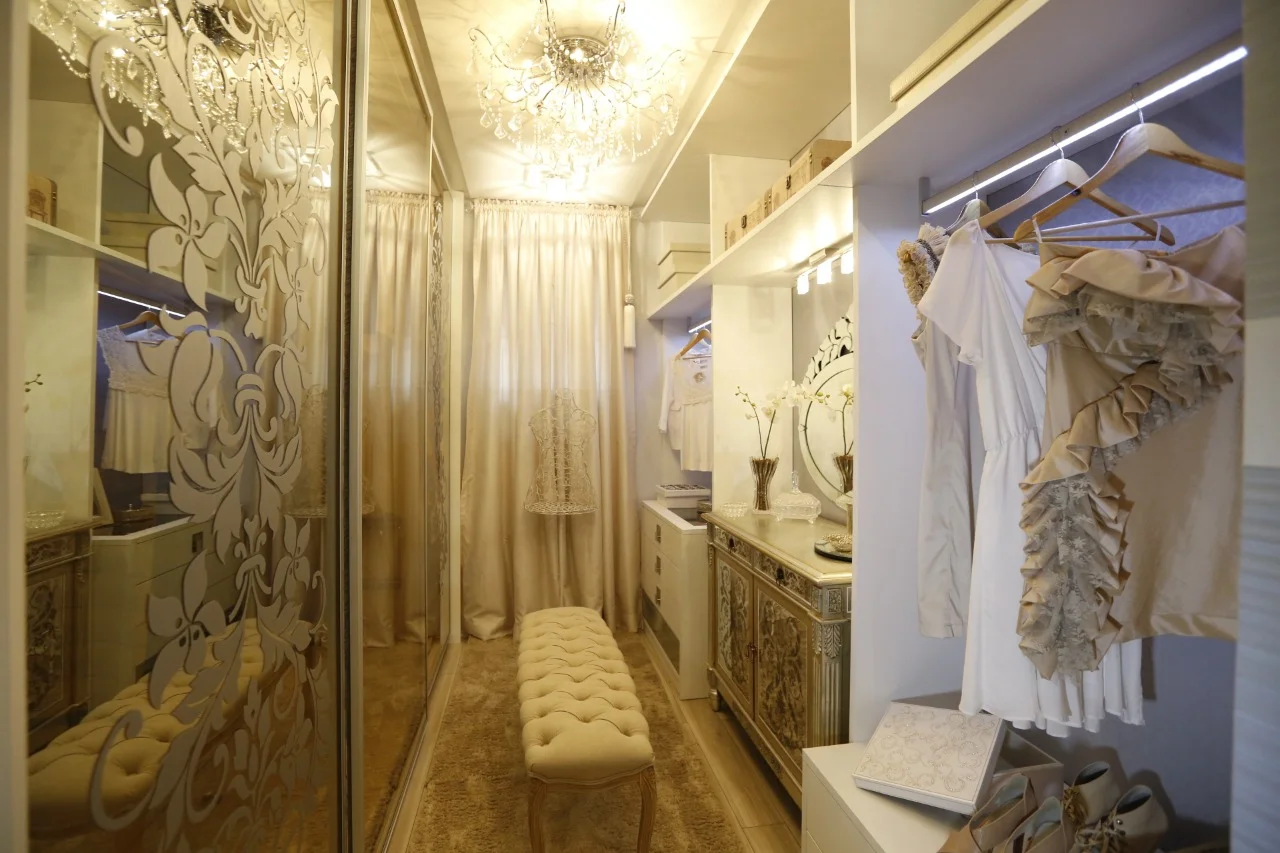 “Eles foram privilegiados pela elegância e o glamour dos detalhes deste ambiente. Planejado para ganhar espaço visual, além de organizar tudo com muito estilo e elegância. Os móveis, objetos, espelhos, caixas em couro e todos os detalhes esbanjam delicadeza e perfeição”, detalha.