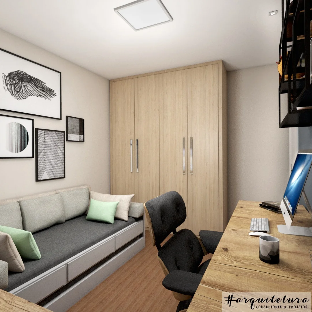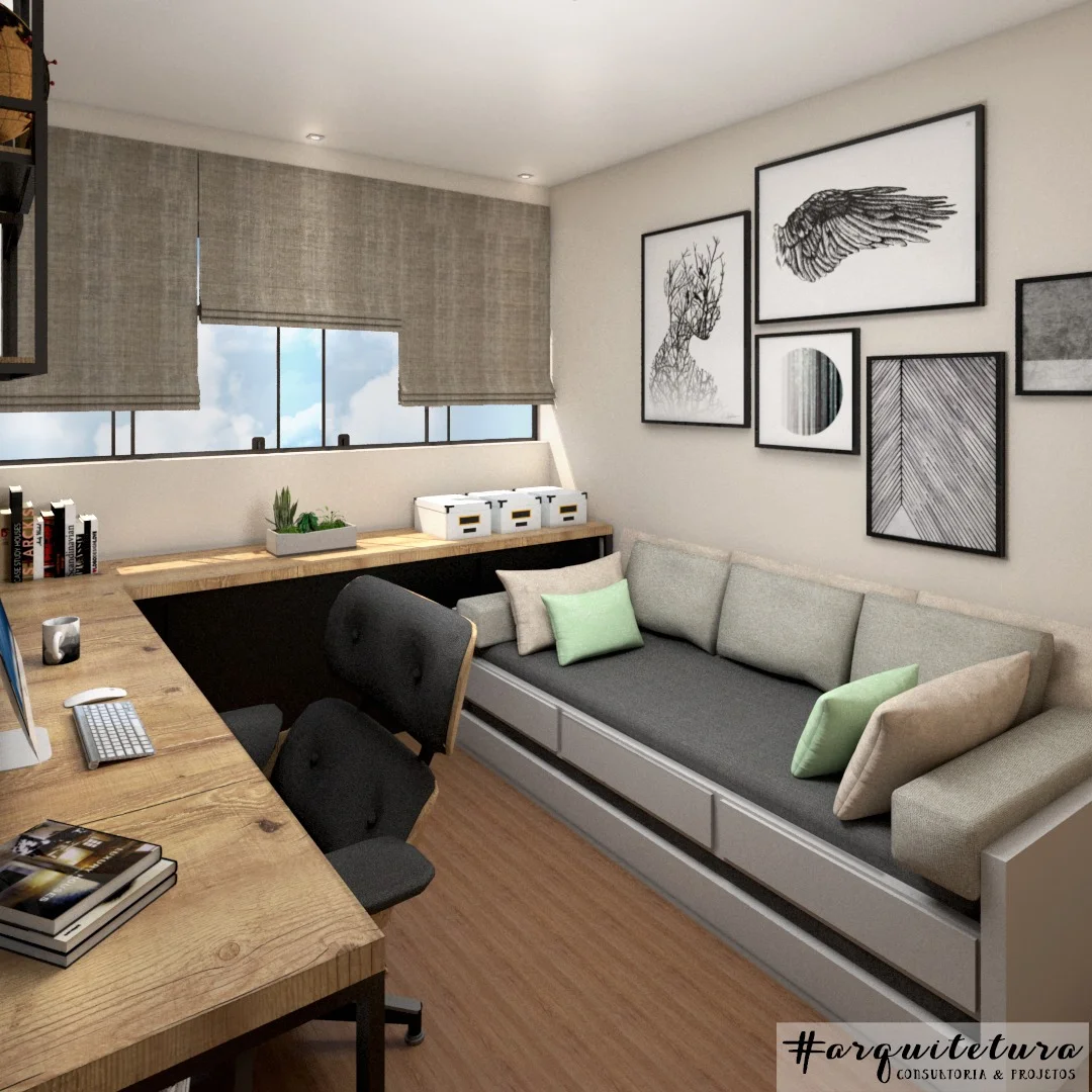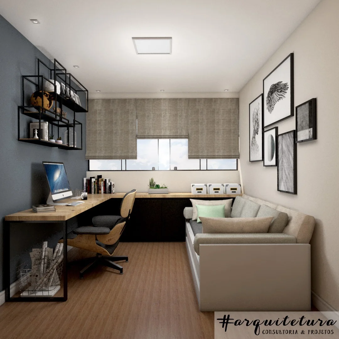 As imagens deste post é de um projeto de escritório feito pela #Arquitetura. Neste caso, o escritório do cliente foi montado em um quarto de hóspedes.