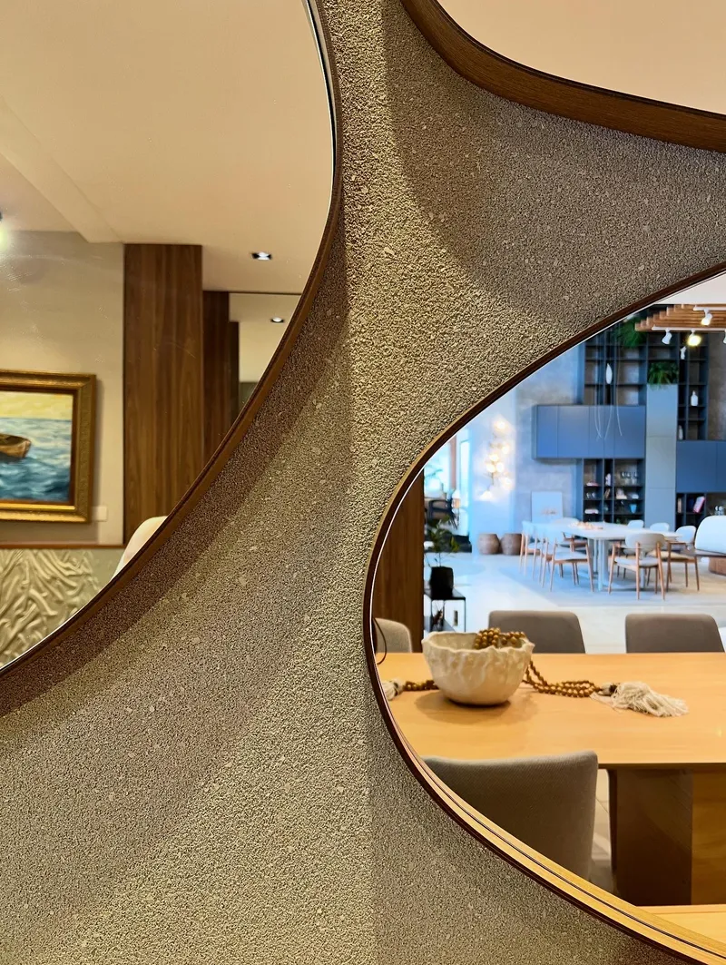 Um dos maiores atributos dos espelhos orgânicos é a sua capacidade de infundir leveza nos ambientes. Com contornos suaves e um caráter fluido, esses espelhos se integram harmoniosamente ao espaço, levando em conta a estética do ambiente, e proporcionando uma sensação de tranquilidade e elegância.