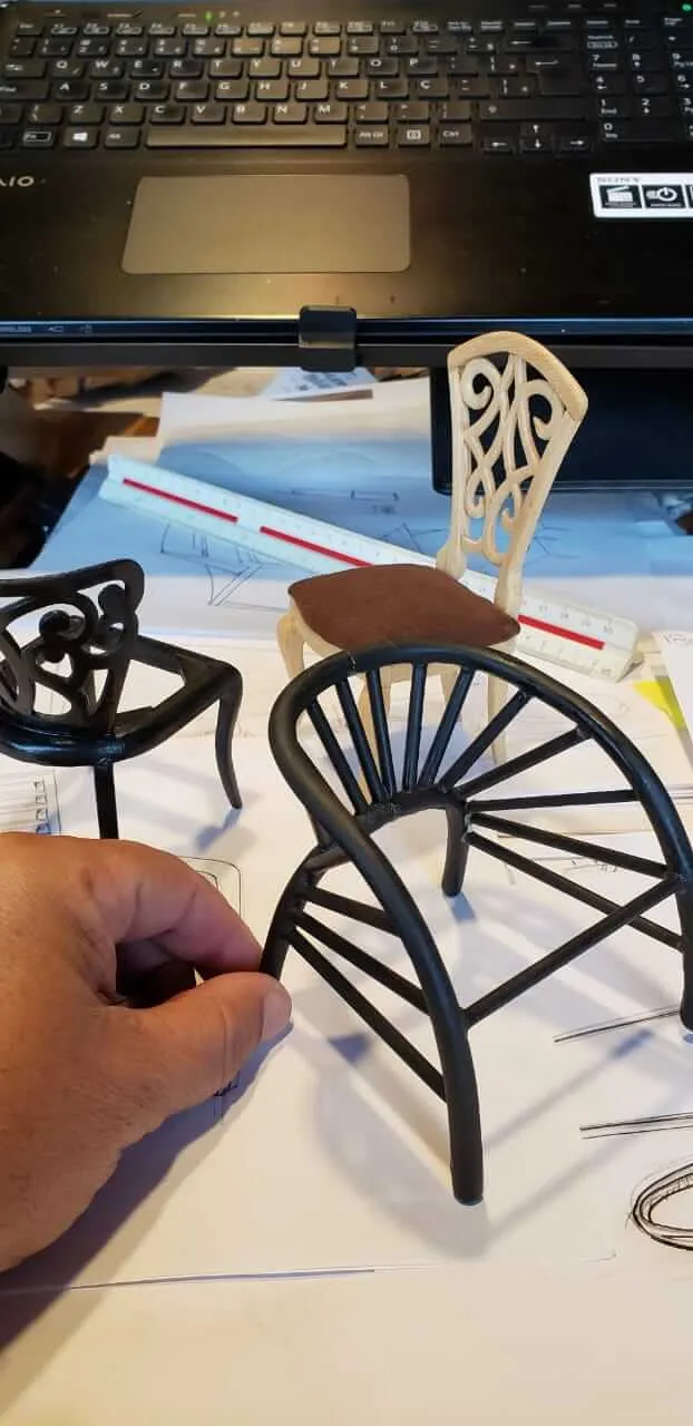 “Dava uns 15 centímetros de altura. Levava uma semana para eu fazer uma cadeira, mas era meu diferencial. Enquanto a maioria levava uma planta, eu levava a planta e a maquete. O cliente fica apaixonado, não tinha erro”, lembra com orgulho.