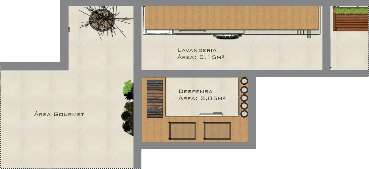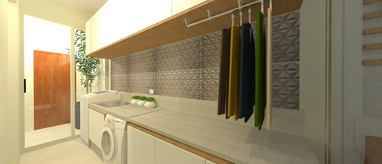 E aí vem à cabeça: posso usar móveis em madeira nessa área, já que provavelmente terá contato com água devido à lavagem de roupas? Segundo a arquiteta Letícia Araújo, isso não é impedimento.