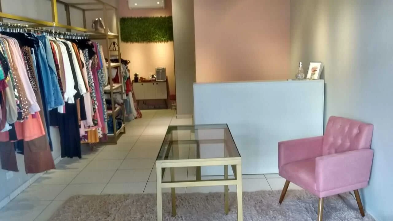 Por ser um espaço estreito e comprido, os expositores foram condicionados em araras na parede e foi acrescentado uma prateleira em frente aos provadores. “Utilizamos o aparador com tampo em vidro, para auxiliar a demonstração das peças. Na frente do caixa, colocamos duas poltronas, também na cor rosa, com um tapete felpudo; todo esse cenário faz com que o cliente sinta-se em casa”, completa.