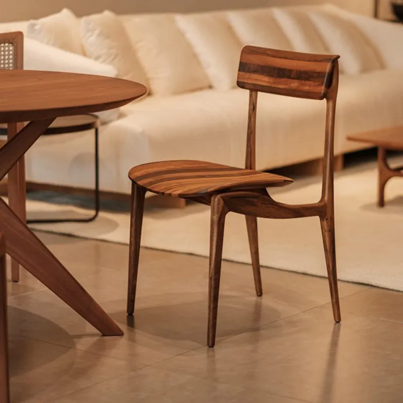 - Cadeira Liv – Essa cadeira possui estrutura e pés em madeira maciça Jequitibá, com opções de assentos e encosto em madeira maciça, aramida ou estofado. Sua fabricante é a San German.