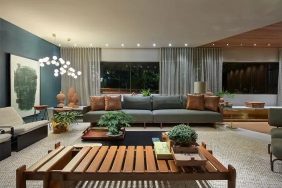 Tapetes, decorações e móveis também transmitem a sensação de natureza através das cores e texturas. A dica é abusar de materiais naturais: móveis em madeira, tapetes com fibras naturais, pisos com aparência de pedras, além de quadros e vasos.