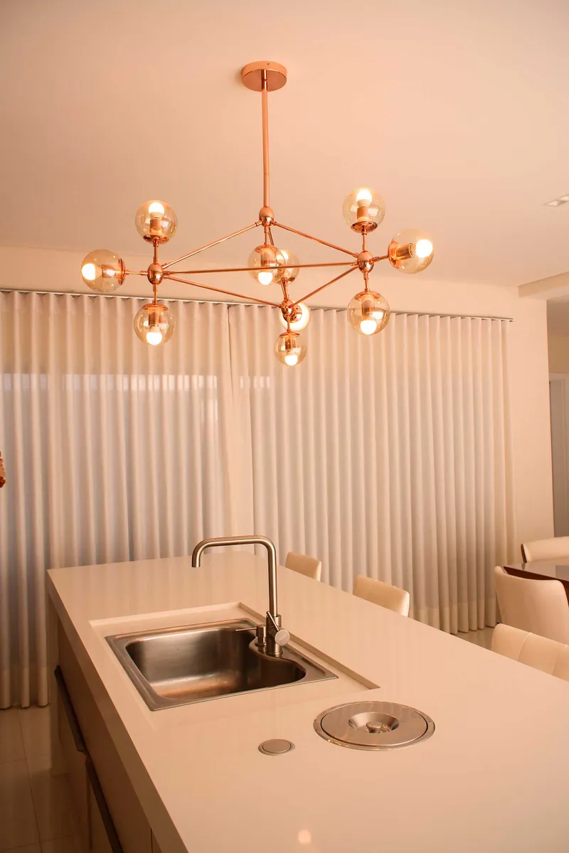 De acordo com Bührer, pelas cores neutras serem atemporais, é possível ousar nos itens de decoração. “Para compor e contrastar com os tons claros, por exemplo, utilizamos diferentes tons de MDF’s amadeirados e vegetação. Os metais foram escolhidos na cor rosê e dourado para fazer composição com a paleta de cores escolhida e dar um toque elegante, sempre buscando estilo clássico com uma pegada moderna”, acrescenta.