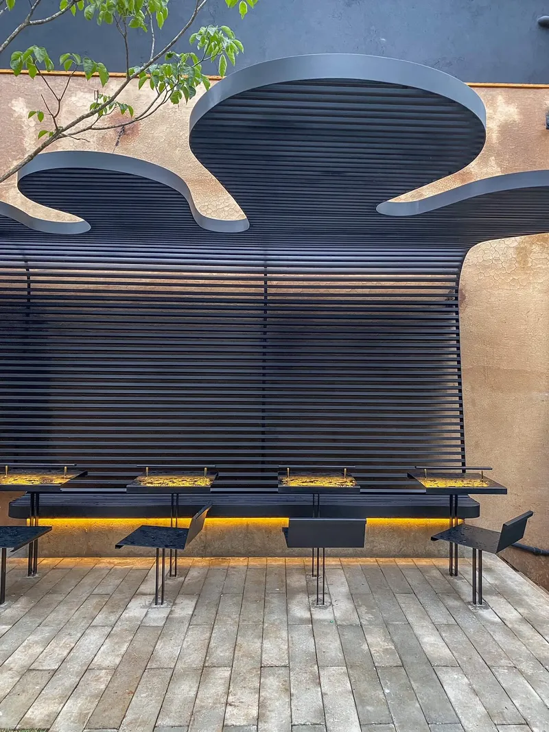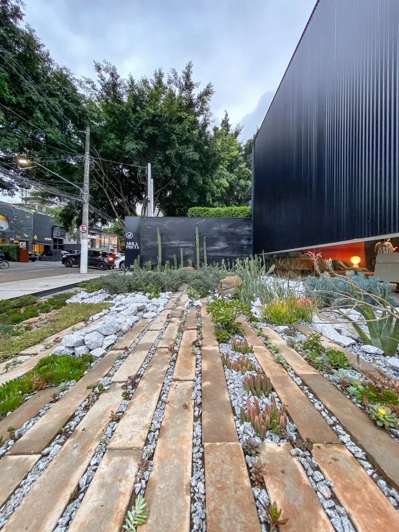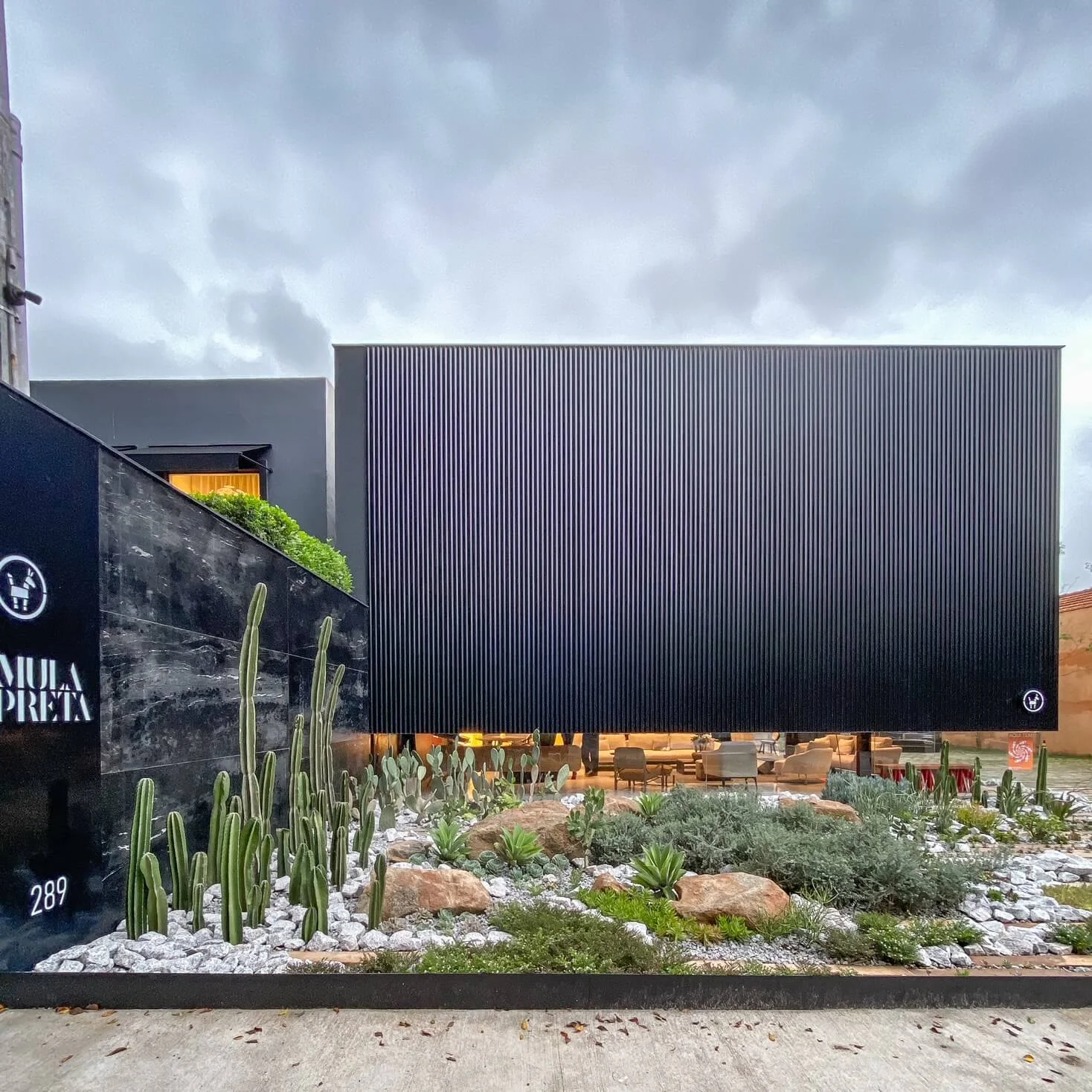 A nova loja, assim como as peças do estúdio, revelam a personalidade dos sócios, que está intrinsecamente ligada ao regionalismo. O projeto foi desenhado por Bezerra, que é arquiteto e comanda paralelamente um escritório de arquitetura. Ele inseriu vários elementos que remetem ao Nordeste: cactos, o xisto, que é rocha encontrada na região, entre outros. Tem até uma tapiocaria do lado de fora, uma “espécie de gentileza urbana para chamar as pessoas para conviverem ali”, detalha Gurgel.
