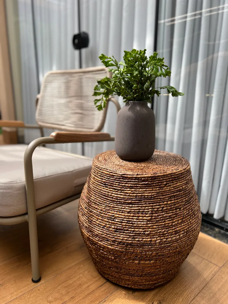 O puff fabricado com fibra de bananeira é um exemplo perfeito de como o artesanato se une ao design inovador. Cada peça é trançada manualmente, o que garante que não existem dois puffs iguais—um toque de personalidade que acrescenta charme ao ambiente. Além disso, a fibra de bananeira é um material sustentável, que promove a consciência ambiental e permite a valorização do trabalho manual.