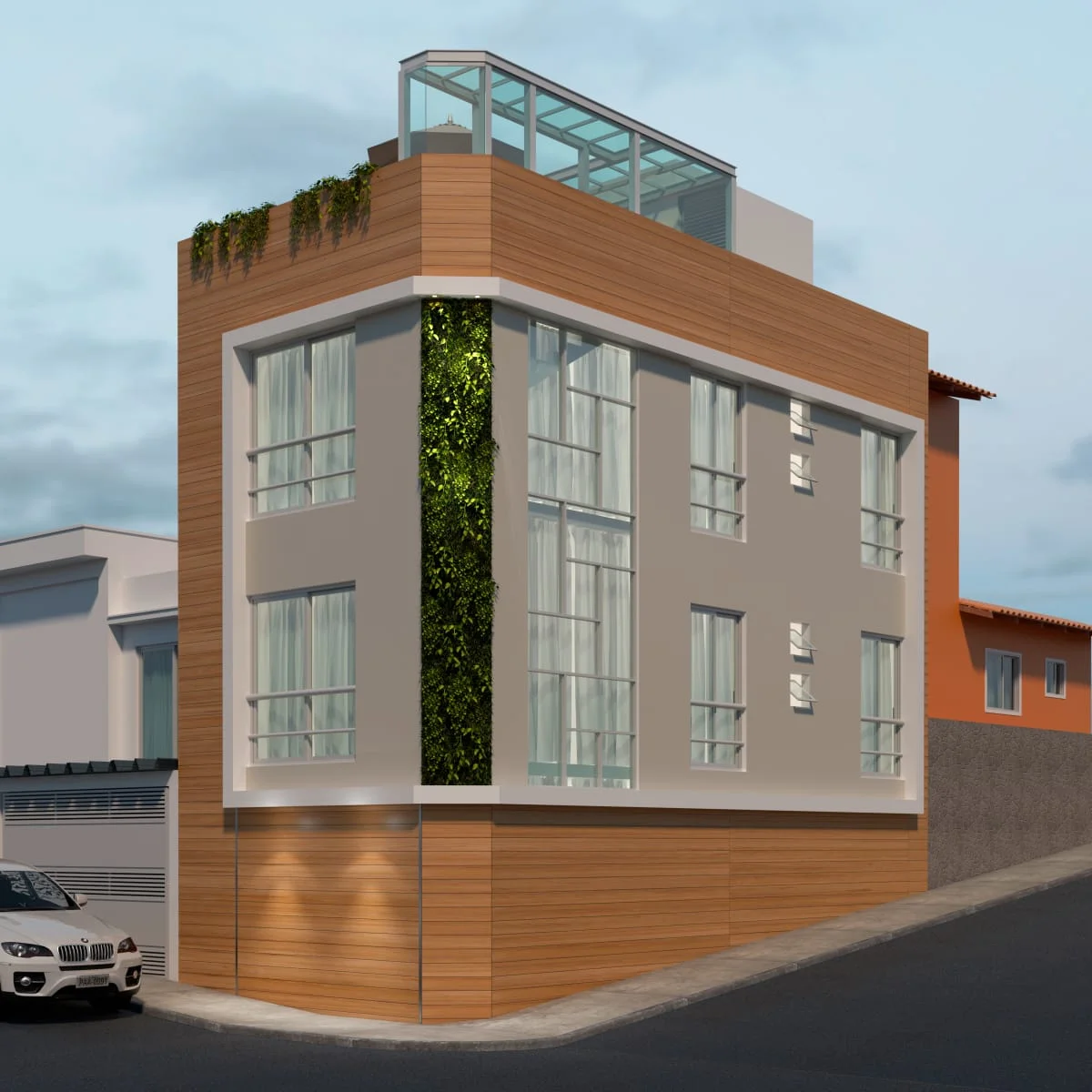 “A proprietária iniciou uma obra sem qualquer indicação profissional e, inevitavelmente, esse tipo de situação te deixa refém de uma obra que nunca acaba. Acontece que ela não queria se desfazer do que já tinha construído e pediu para que fosse aproveitado a estrutura existente, melhorando a plástica do imóvel. Então eu apostei em aberturas mais generosas e elementos que trouxessem mais movimento para a fachada que estava completamente dura e sem identidade. Além disso, usei materiais mais modernos, como a madeira plástica, que contribui para dar um ar mais contemporâneo na fachada e é extremamente durável”, detalha Renata.