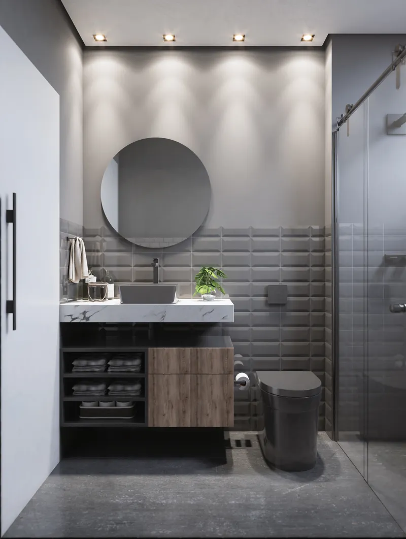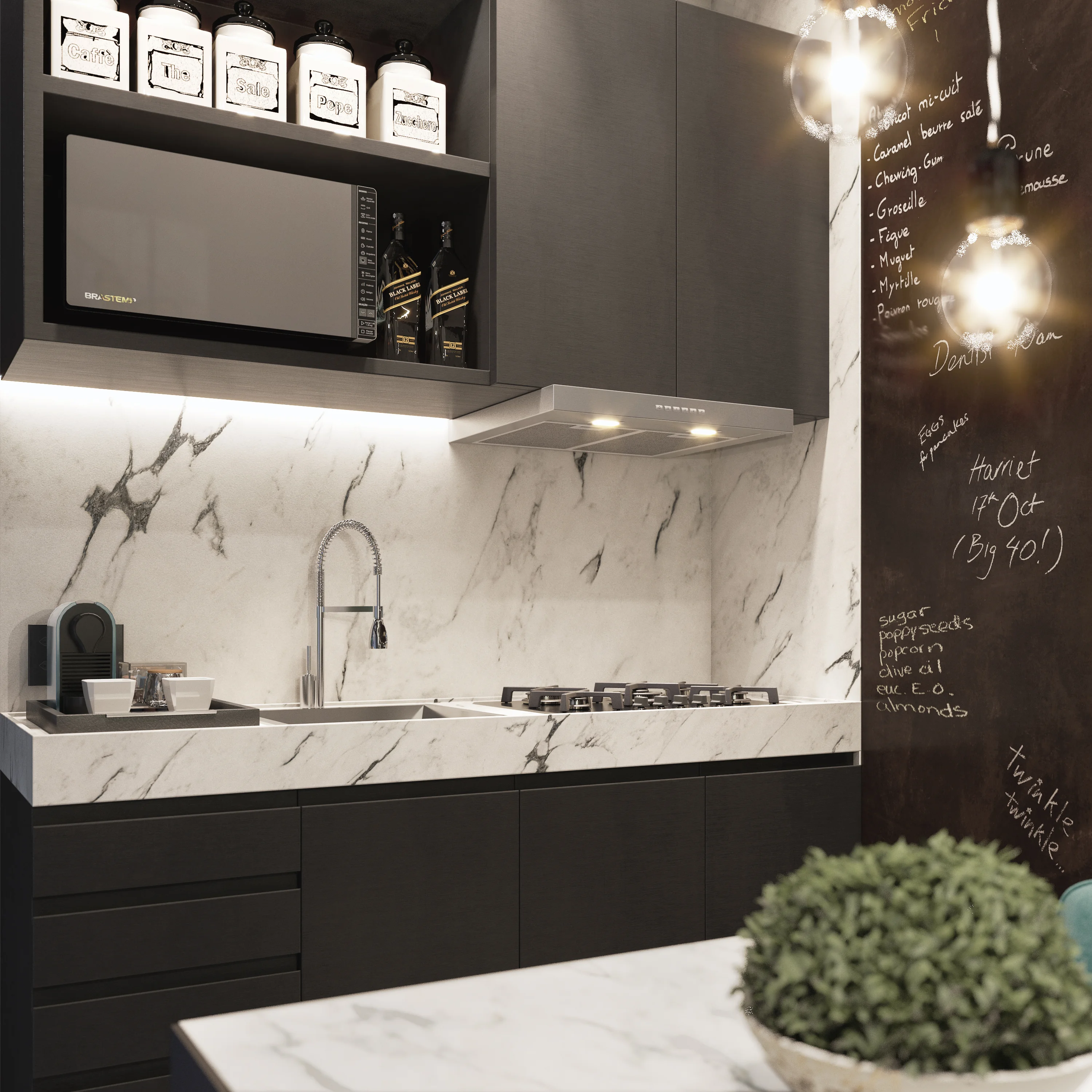 “Além disso, utilizamos revestimentos que, mesmo sendo atuais, remetem ao conceito original, como o piso em porcelanato acetinado que se refere ao concreto, a textura de cimento queimado nas paredes, e o uso de um tijolinho cinza no banheiro, que traz de volta o conceito do ’rústico’, porém, nesse caso com um revestimento mais sofisticado e contemporâneo”, detalha sobre o projeto LW.